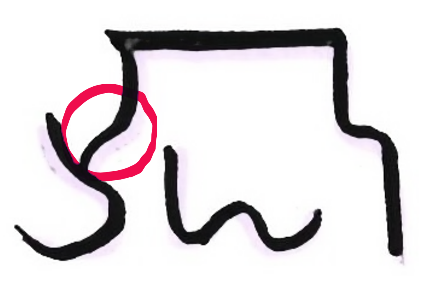 龍体文字の書き方で、注意されたこと 「や」 ‥‥ 中央は、アルファベットの M や H の変形では ない 「ら」 ‥‥〇印のところは、カタカナの ノ では ない