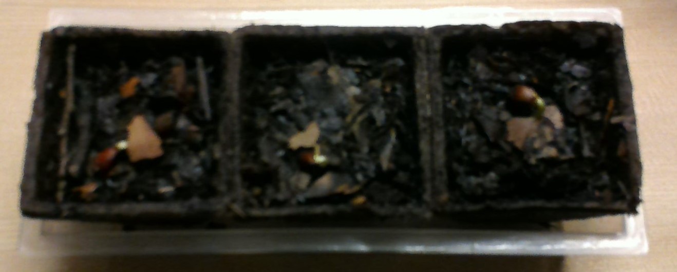 腐葉土を入れ、種を置き、水を遣った。