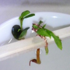 割り箸と銅線で支えて、水栽培中。