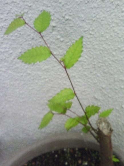 私の部屋の前には、プランターに自生した木(コナラか? ミズコナラか?)が、